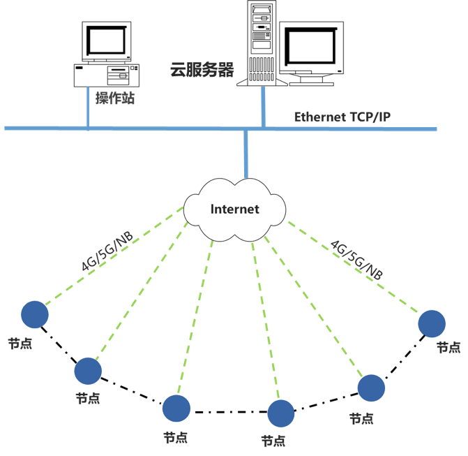 ? 傳感節(jié)點(diǎn),直接和企業(yè)云平臺(tái),或是基于公有云服務(wù)器構(gòu)建的云平臺(tái)系統(tǒng),通信,而無(wú)需經(jīng)過(guò)任何第三方平臺(tái)進(jìn)行數(shù)據(jù)轉(zhuǎn)發(fā)或中轉(zhuǎn)。