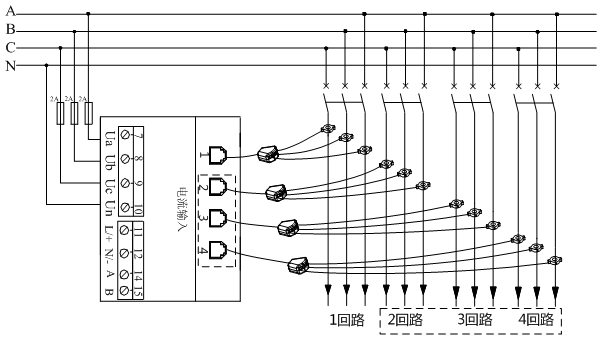 3、可同時(shí)監(jiān)測1至4個(gè)回路的用電數(shù)據(jù),更適用于配電柜(動力柜)、控制柜內(nèi)的出線回路計(jì)量;