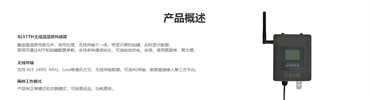 XL51TH無線溫濕度傳感器,集成溫濕度傳感元件、信號(hào)處理、無線傳輸于一體。帶顯示屏和按鍵,實(shí)時(shí)顯示數(shù)據(jù),現(xiàn)場(chǎng)可通過APP和按鍵配置參數(shù),支持多種通信協(xié)議,可選電池供電,安裝、使用更簡(jiǎn)單、更方便。