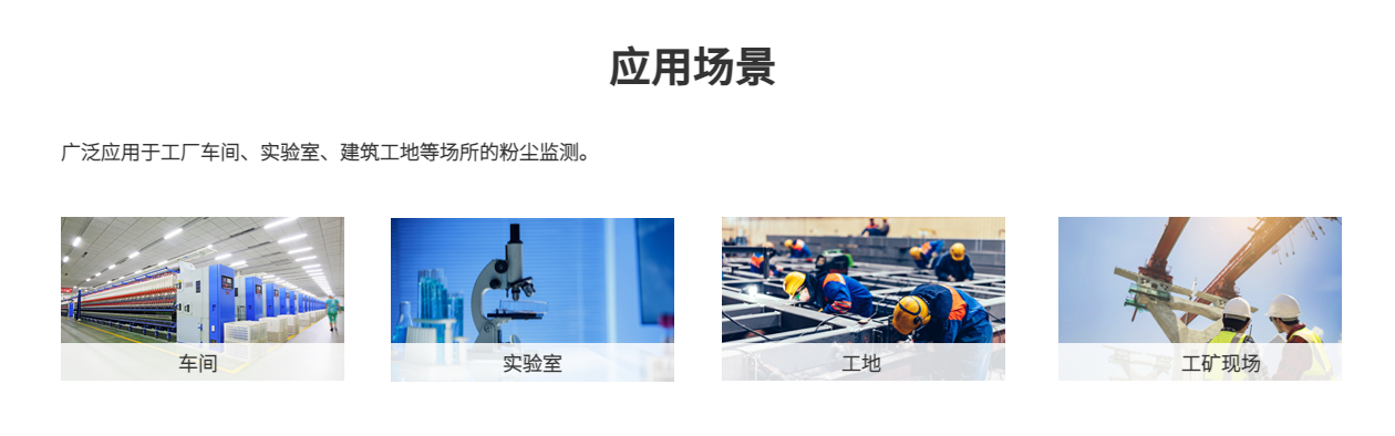 廣泛應(yīng)用于工廠車間、實(shí)驗(yàn)室、建筑工地等場(chǎng)所的粉塵監(jiān)測(cè)。