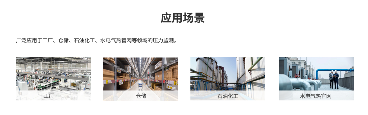 廣泛應(yīng)用于石油、化工、工廠、倉(cāng)儲(chǔ)、水電氣熱管網(wǎng)等領(lǐng)域的壓力監(jiān)測(cè)。