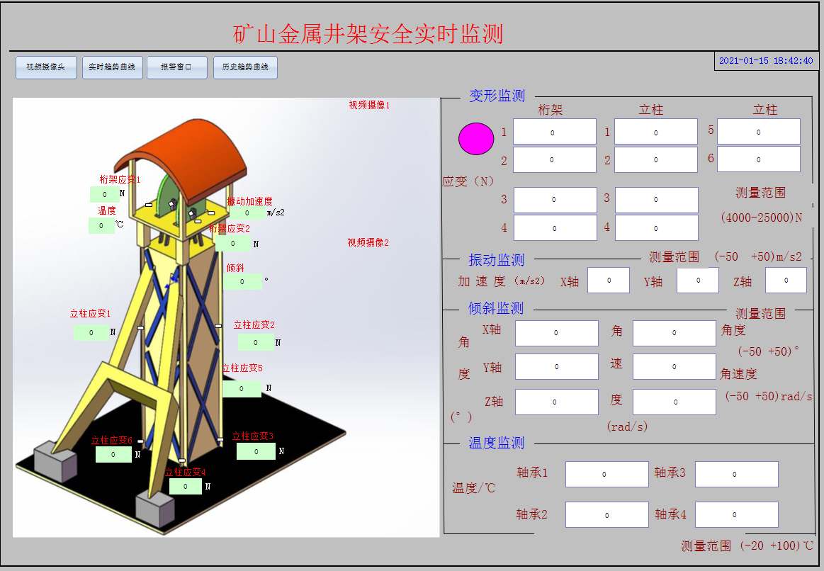 井架安全實(shí)時(shí)監(jiān)測系統(tǒng)主界面: