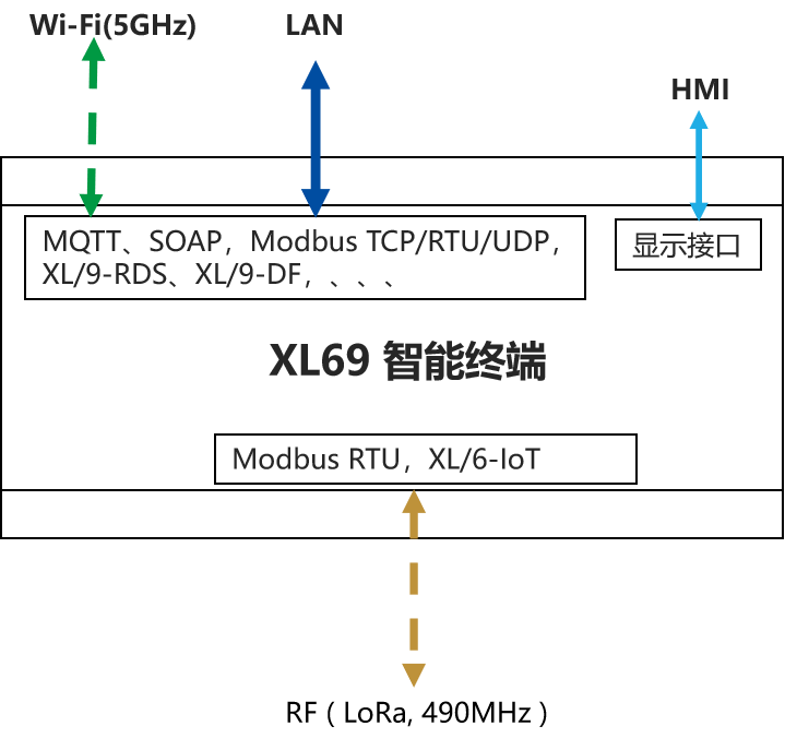 智能終端:XL69,協(xié)議轉換、數(shù)據(jù)處理、存貯;