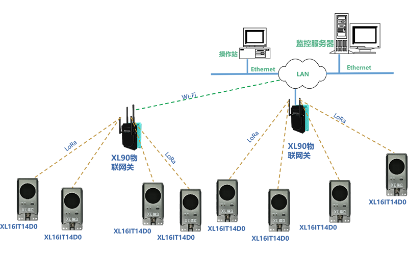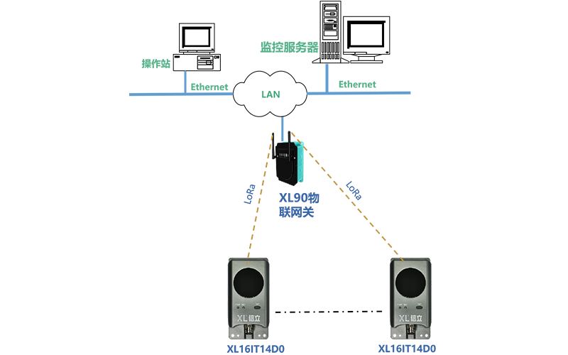 XL90或XL95物聯(lián)網(wǎng)關(guān)作為無(wú)線接收端,進(jìn)行協(xié)議轉(zhuǎn)換,數(shù)據(jù)轉(zhuǎn)發(fā)。