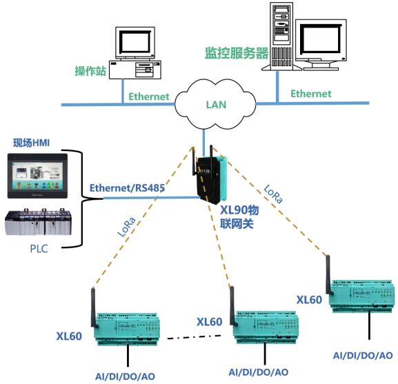 XL90或XL95物聯(lián)網(wǎng)關(guān)作為無(wú)線接收端,進(jìn)行協(xié)議轉(zhuǎn)換,數(shù)據(jù)轉(zhuǎn)發(fā)。