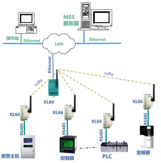 XL80主機(jī),通過LoRa無線接口,從XL66無線讀取設(shè)備的運行數(shù)據(jù),通信協(xié)議轉(zhuǎn)換處理后,通過Ethernet,轉(zhuǎn)發(fā)數(shù)據(jù)至MES。