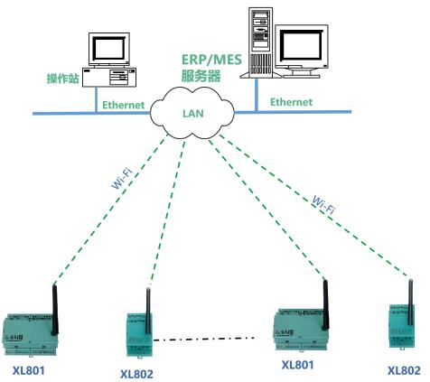 XL80X選擇Wi-Fi通信方式,適用于工廠車間內(nèi)的數(shù)據(jù)采集和無線傳輸,且有局域網(wǎng)Wi-Fi覆蓋的區(qū)域。