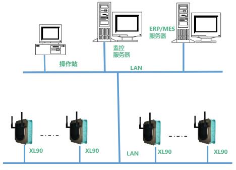 根據(jù)工廠局域網(wǎng)的分布,設(shè)計(jì)網(wǎng)關(guān)的安裝點(diǎn),以XL90網(wǎng)關(guān)為通信中樞,構(gòu)建覆蓋數(shù)字化系統(tǒng)區(qū)域的工廠物聯(lián)網(wǎng)。