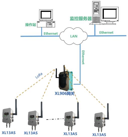 根據現場實際情況,部署XL906物聯網關,XL13AS無線風管風速傳感器通過LoRa無線傳輸數據至XL906物聯網關,網關可選Ethernet、Wi-Fi4G等多種方式將風速數據傳輸至監(jiān)控平臺。