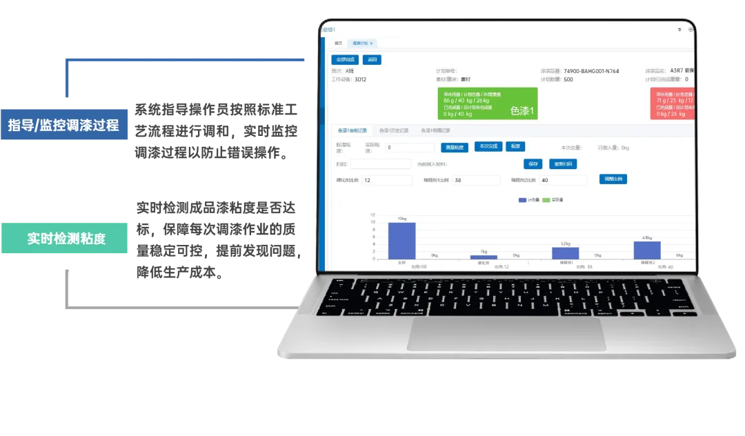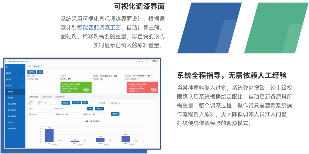在傳統(tǒng)的調(diào)漆和制漆過程中,過于依賴個人經(jīng)驗技能,靠師傅帶徒弟的方式培訓(xùn),人為因素容易導(dǎo)致調(diào)漆質(zhì)量不穩(wěn)定、風險大;漆料選用、使用、調(diào)漆操作等都依賴人工記錄,導(dǎo)致質(zhì)量問題無法追溯、漆料浪費大、統(tǒng)計數(shù)據(jù)不準確等問題。