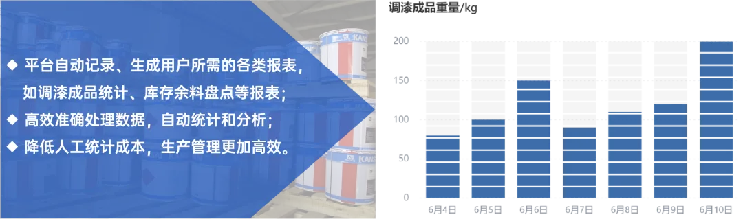 九大亮點功能,完美解決傳統(tǒng)調(diào)漆、制漆的固有問題,降低對人的依賴,減少漆料浪費,更準確完整地計算統(tǒng)計漆料的使用及產(chǎn)出。